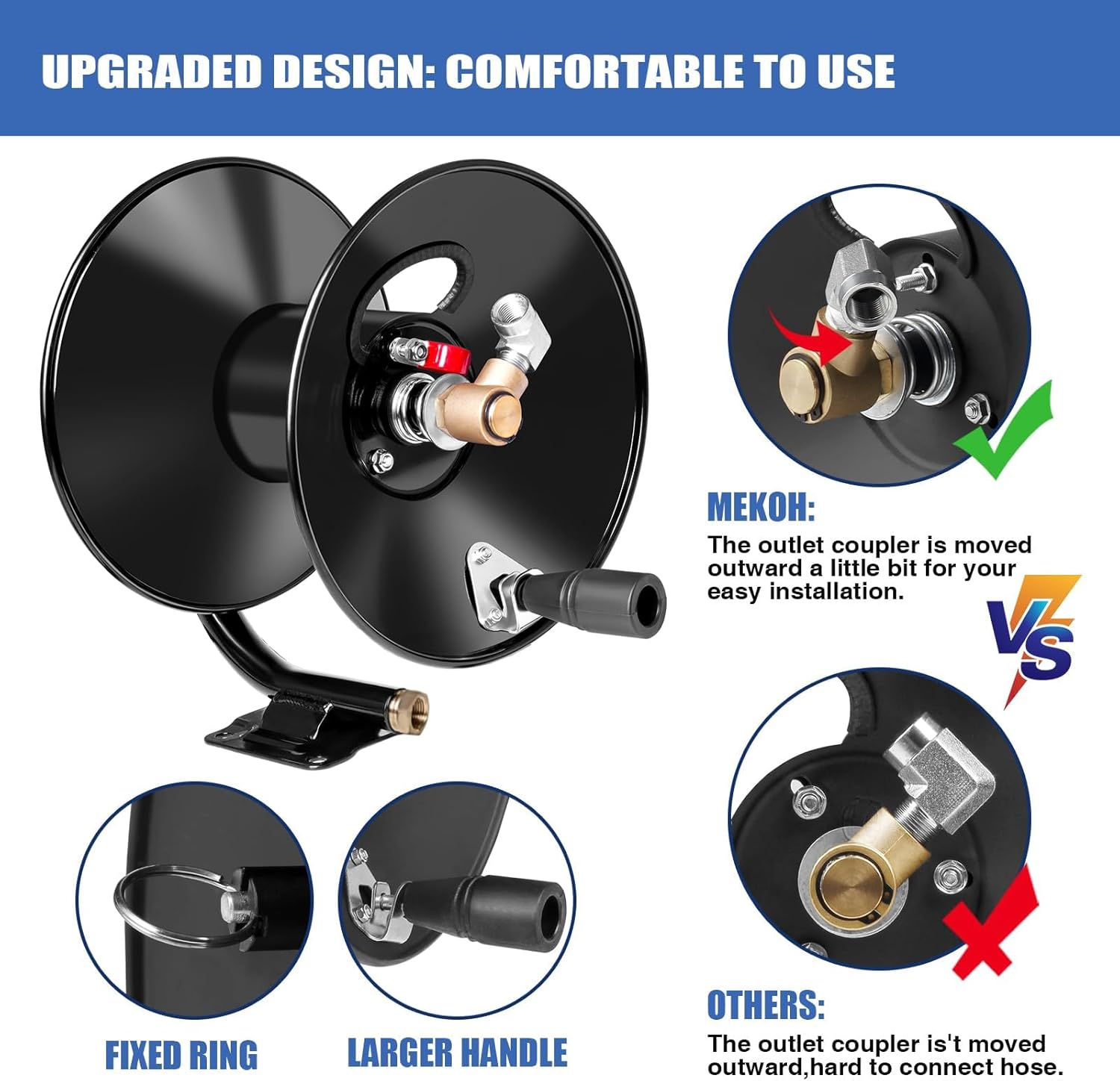 **Customer Satisfaction Guaranteed:** Backed by MEKOH’s commitment to quality, this hose reel comes with a satisfaction guarantee, ensuring you have peace of mind with your purchase.